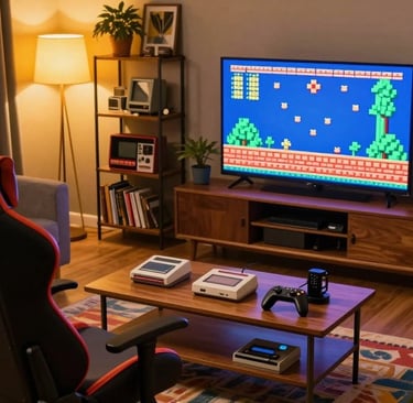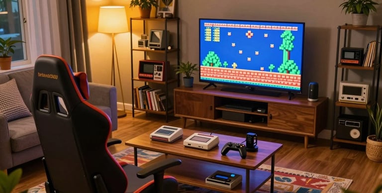 It's ideal for those who love classic consoles but also want the latest tech. By adding retro decor and classic consoles with modern gear, you get a special gaming area.